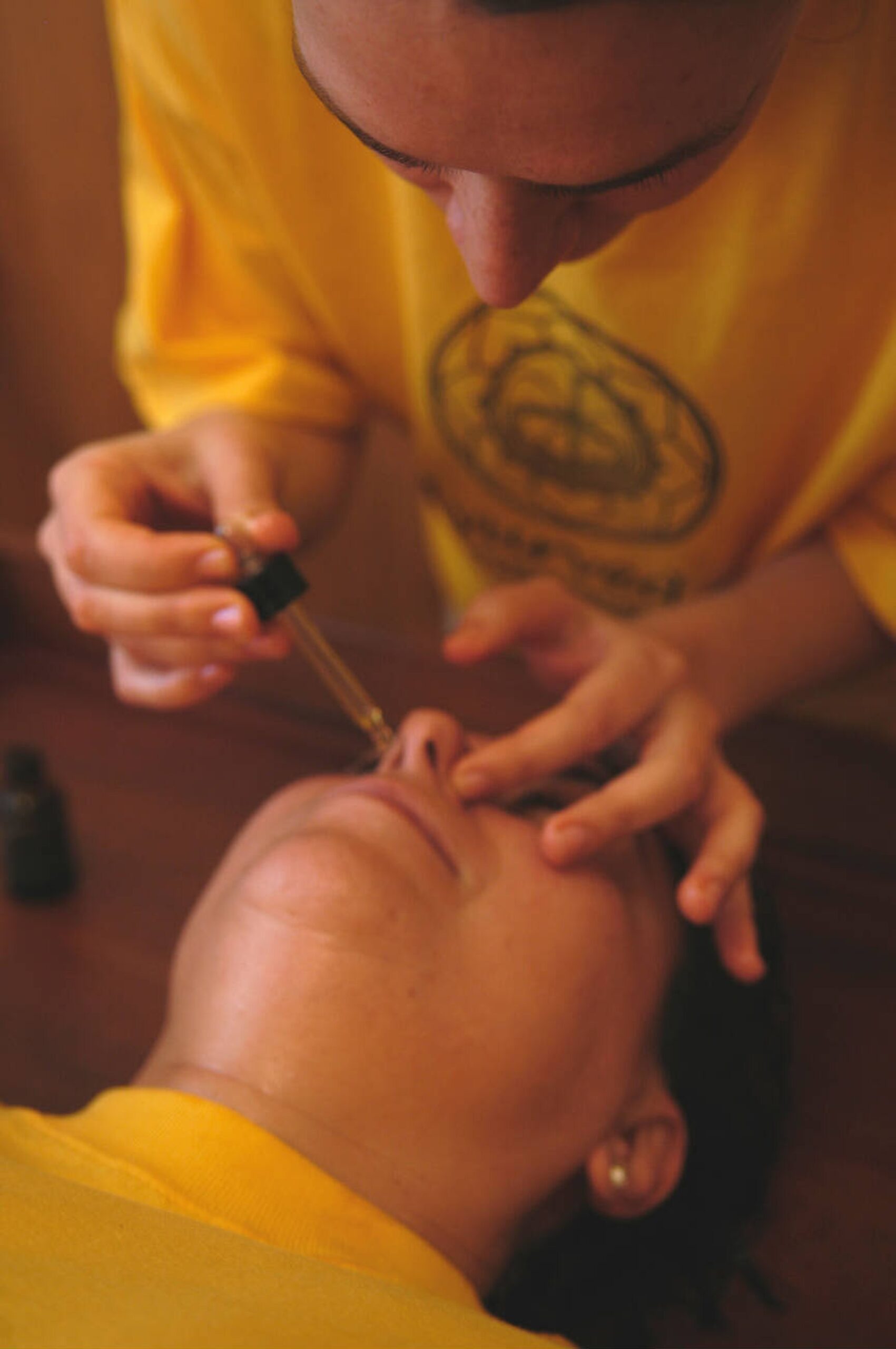 Nasya therapy cleanses the nasal passages using medicated oils to improve breathing and sinus health.
